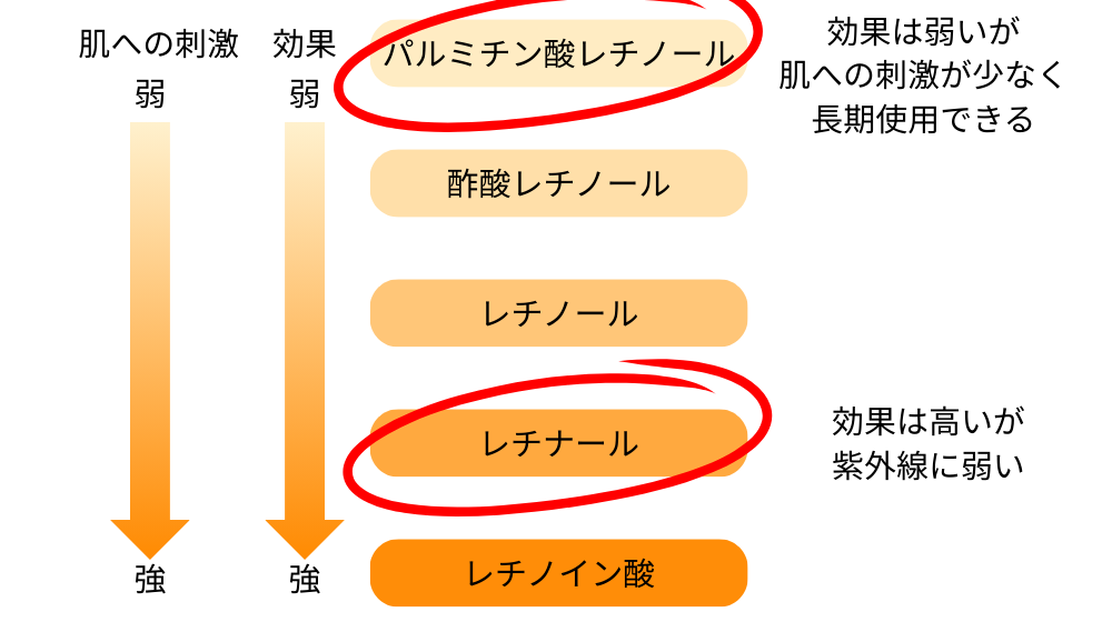 パルミチン酸レチノールはレチノールの中でも刺激が少なく安定性の高い成分です。